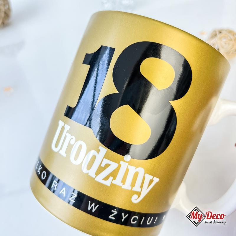 Duży kubek o imponującej pojemności 700 ml to więcej niż tylko naczynie do picia. Towarzysząc w codziennych rytuałach, kubek eliminuje konieczność częstego wstawania po kolejną dolewkę, co sprawia, że staje się niezastąpionym towarzyszem podczas długich sesji przy komputerze czy relaksu w domowym zaciszu. 18 Urodziny to nie tylko cyfra, to wyraz radości, swobody i pełnoletności, której warto uczcić w wyjątkowy sposób. Kubek wykonany jest z trwałej porcelany w złotym kolorze, a napisy biało-czarne co nie tylko gwarantuje estetyczny wygląd, ale także długotrwałe użytkowanie. Jego duży rozmiar to doskonała propozycja prezentu dla prawdziwego faceta, dla którego kubek to nie tylko pojemnik na napój, ale także element stylizacji, który dodaje charakteru i wyjątkowości.