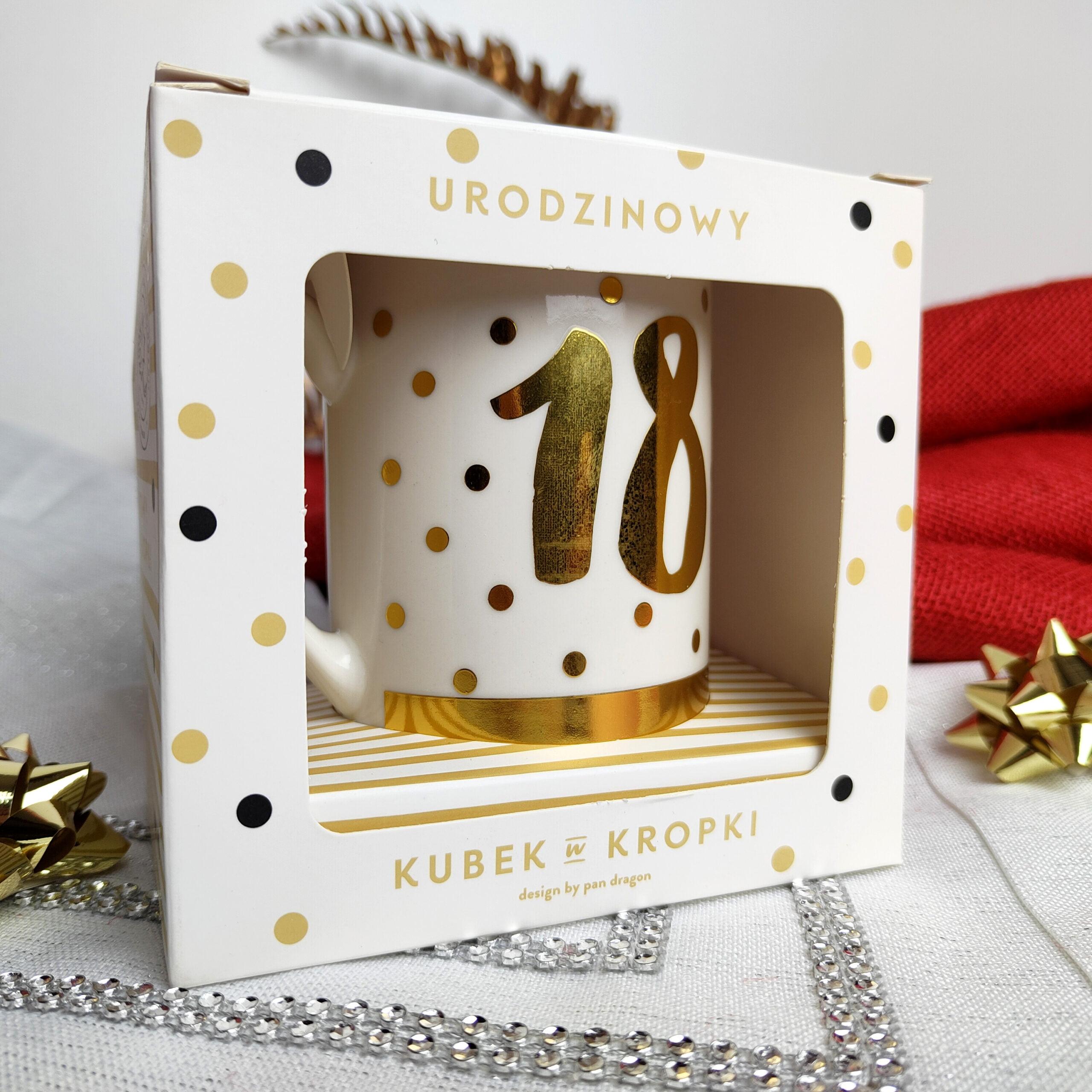 Kubek na 18 Urodziny Prezent złote kropki