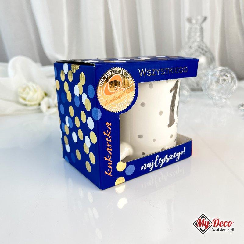 Dedykowany jubilatowi z okazji 18. urodzin, kubek nie tylko przechwytuje chwilę obchodów, ale także jest niezwykłym nośnikiem życzeń i dobrych myśli. Jego pojemność 300 ml sprawia, że każdy łyk ulubionego napoju staje się wyjątkowym doświadczeniem, podkreślając, że życzenia ‘Wszystkiego Najlepszego’ towarzyszą solenizantowi nie tylko w dniu jubileuszu, ale również przez lata.