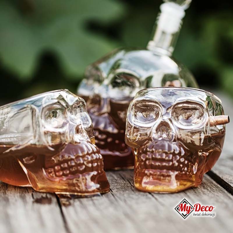 Kuloodporna szklanka czaszka z zatopionym pociskiem – idealny prezent dla kolekcjonerów i miłośników oryginalnych dekoracji.