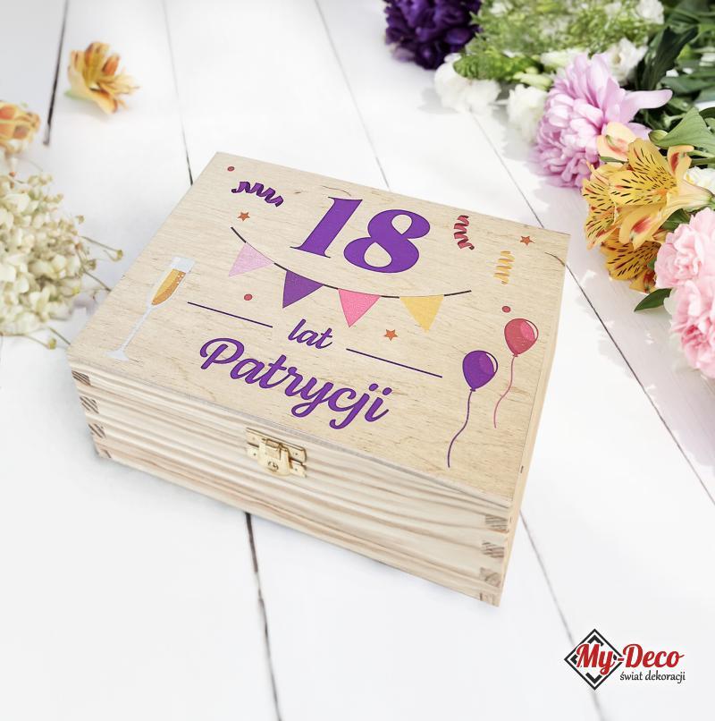 Skrzynka drewniana Prezent na Urodziny ♥ Personalizacja z imieniem Nadruk UV.