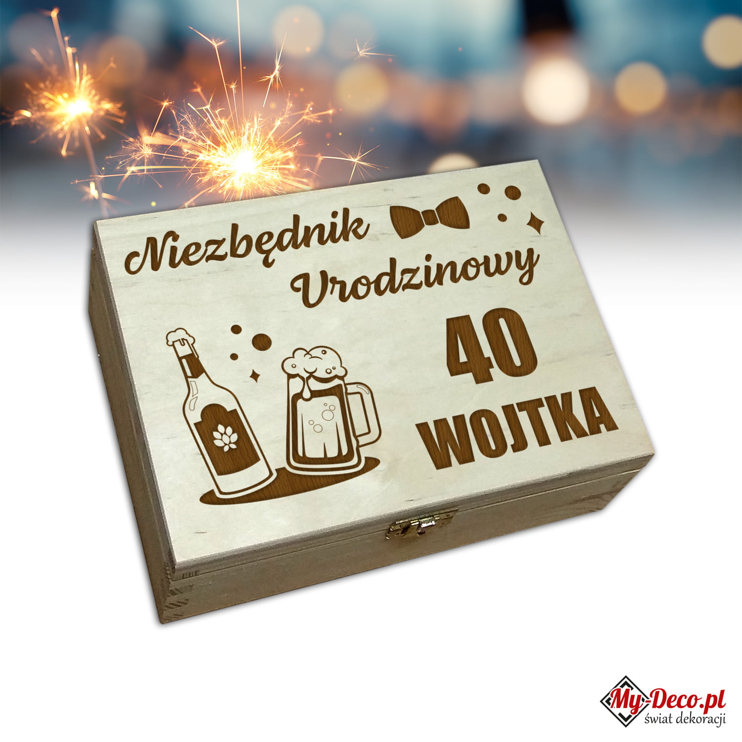 Skrzynka Drewniana Zamykana Personalizowana na Urodziny z Życzeniami Grawerowana