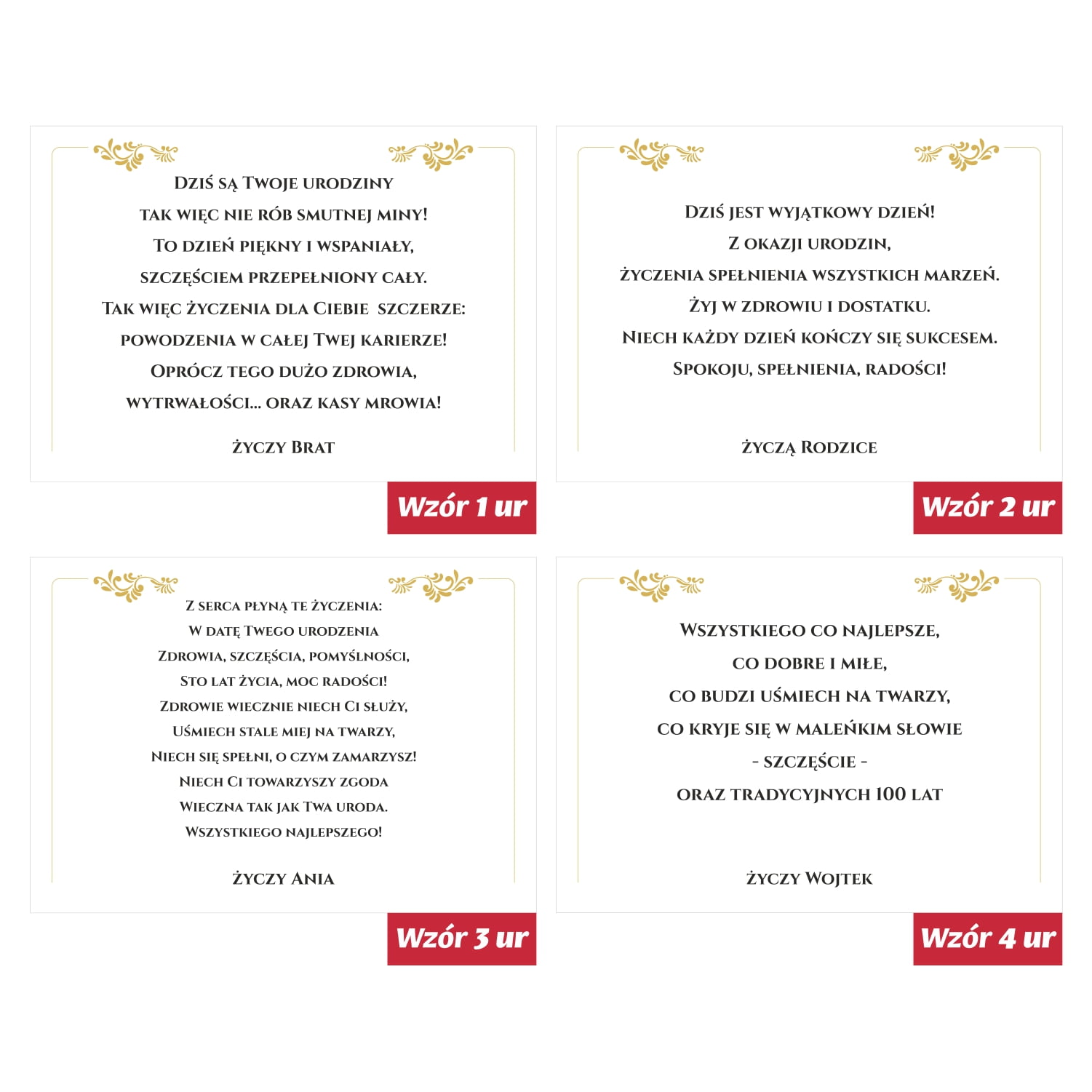 – wybrany wzór życzeń wewnątrz pudełka: Wzór 1, Wzór 2, Wzór 3, Wzór 4