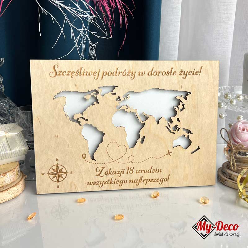 Gwarantujemy Ci, że nasza Ramka Mapa Pieniądze Życzenia Prezent 18 Urodziny jest czymś zupełnie innym niż standardowe banknoty wręczane w kopercie. To nie tylko dar materialny, to także wyraz twórczej myśli i troski o szczegóły. Nasza rama łączy w sobie trzy kluczowe elementy: mapa świata wycięta laserowo z przestrzennej, możliwość umieszczenia w niej banknotów oraz symboliczne życzenia. To połączenie czyni ten prezent niezapomnianym.