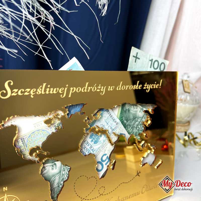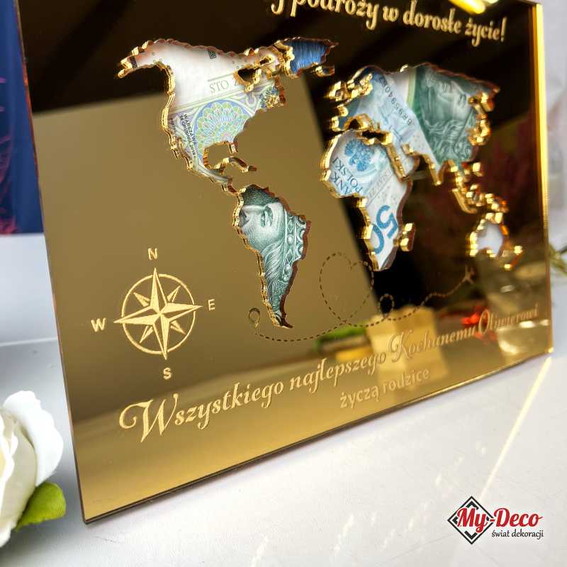Ramka na banknoty z mapą ♥ Prezent na Osiemnastkę. Personalizowany prezent z imieniem i dedykacją.