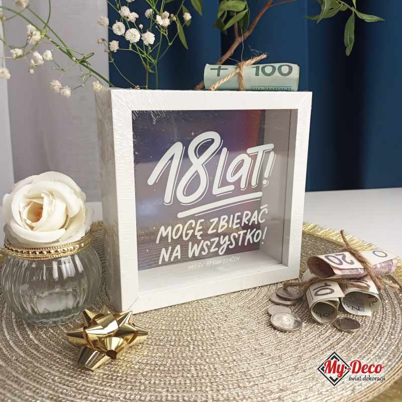 Spełnianie marzeń jest ważne, zwłaszcza gdy mamy konkretny cel. Nasza skarbonka “18 lat mogę zbierać na wszystko!” jest idealnym narzędziem, które pomoże Ci odłożyć pieniądze na mniejsze i większe przyjemności. Ta duża skarbonka nie tylko wygląda atrakcyjnie, ale także doskonale wpasuje się w każde wnętrze, stając się jego ozdobą. To świetny pomysł na oryginalny prezent na urodziny, który znacznie zwiększa szanse na realizację marzeń. Oszczędzanie pieniędzy jeszcze nigdy nie było tak przyjemne i satysfakcjonujące, zwłaszcza gdy można zobaczyć swoje postępy.