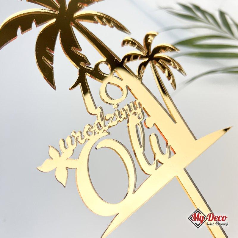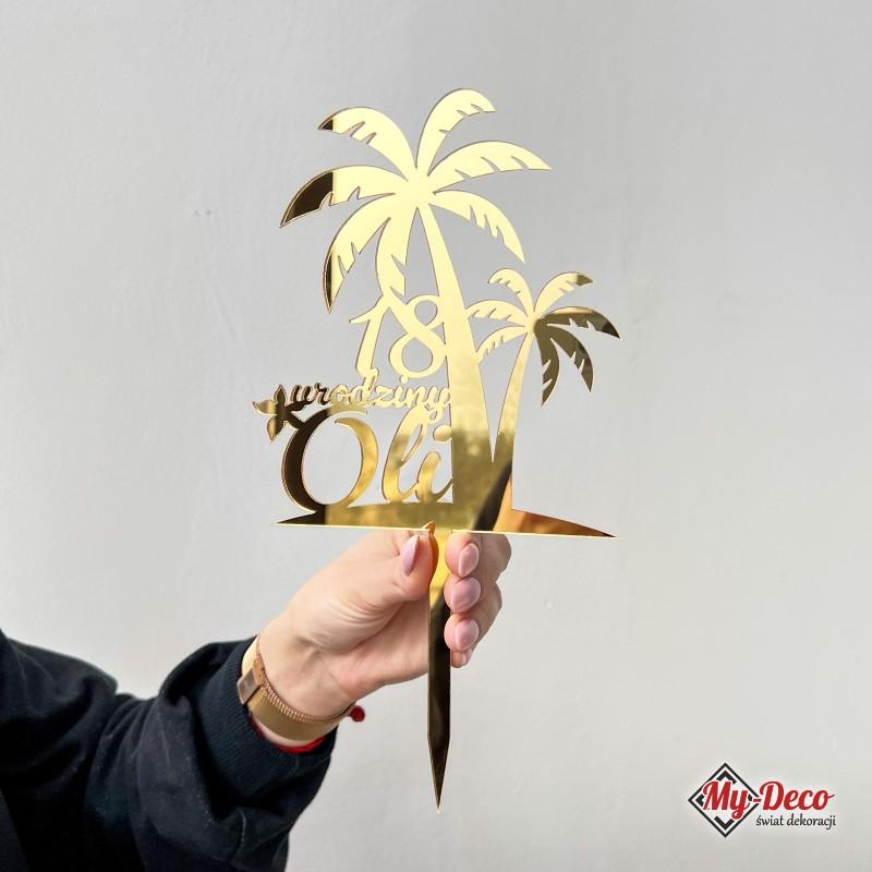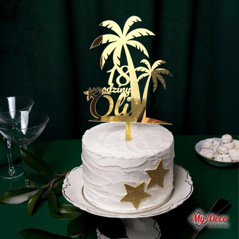 Topper na Tort 18 Urodziny Złoty ♥ Personalizowany topper z imieniem na tort złota lustrzana pleksi